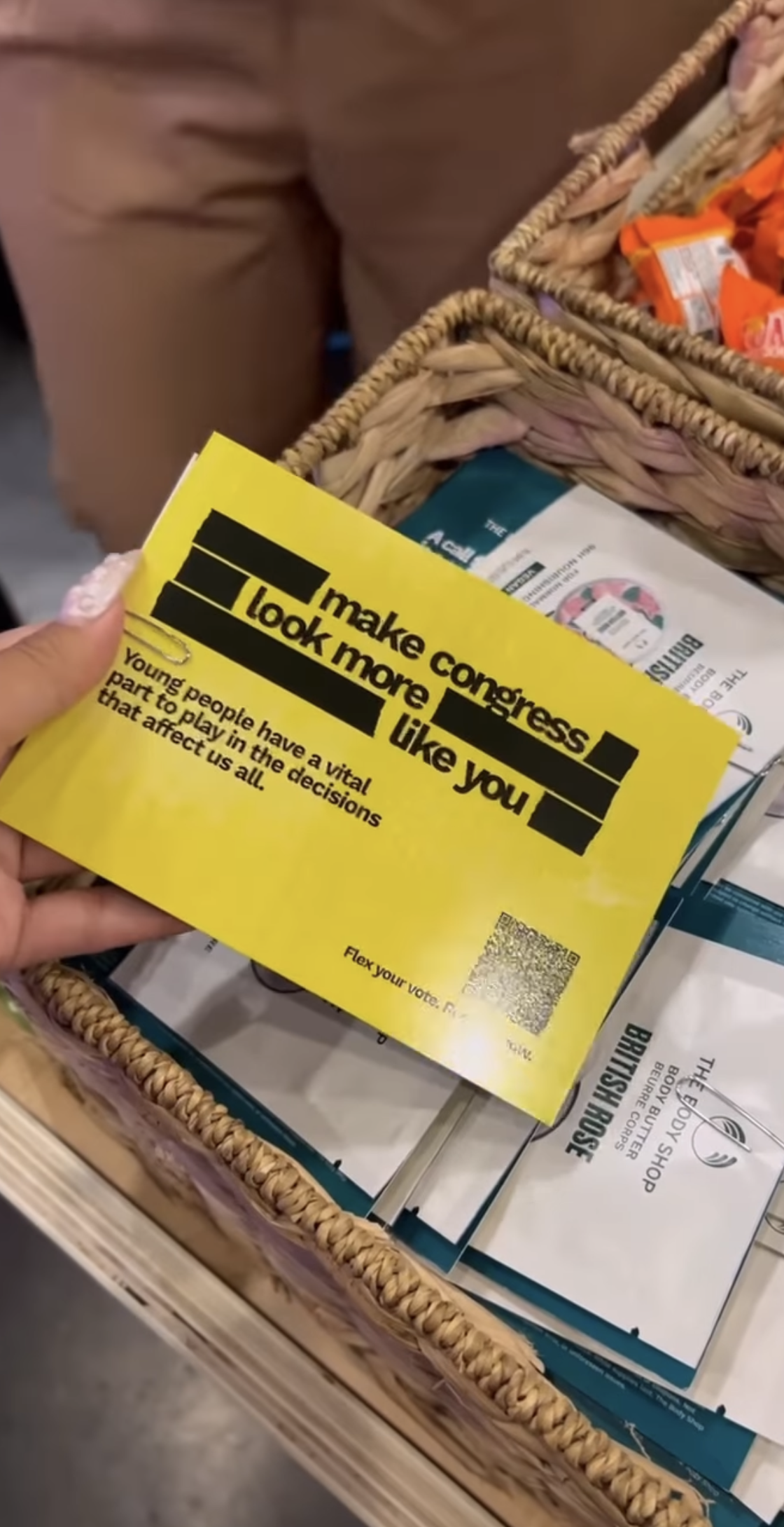 today, there are 1.8 billion people under the age of 24, the largest generation of youth in history, yet the average age of world leaders is 62. the body shop encouraged young voters to make congress look more like them